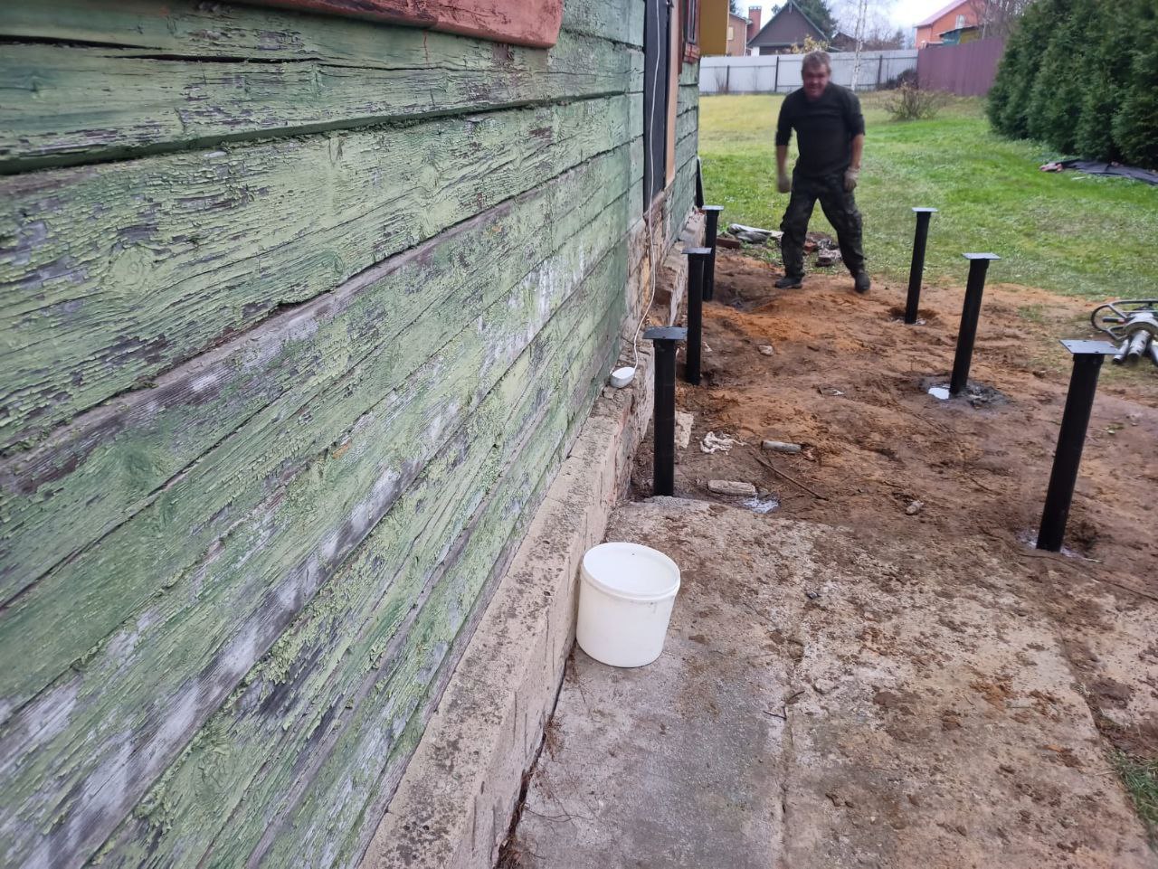 Для фундамента крыльца было использовано 6 винтовых свай. Процесс установки включал: